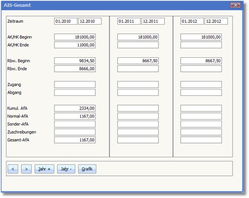 Dieses Feld zeigt die planmäßige Abschreibung im Wirtschaftsjahr.