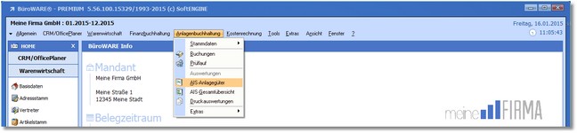 1.Das Anlage-Informations-System einzelner Anlagegüter wird im Hauptmenü über "Anlagenbuchhaltung > AIS-Anlagegüter" aufgerufen.