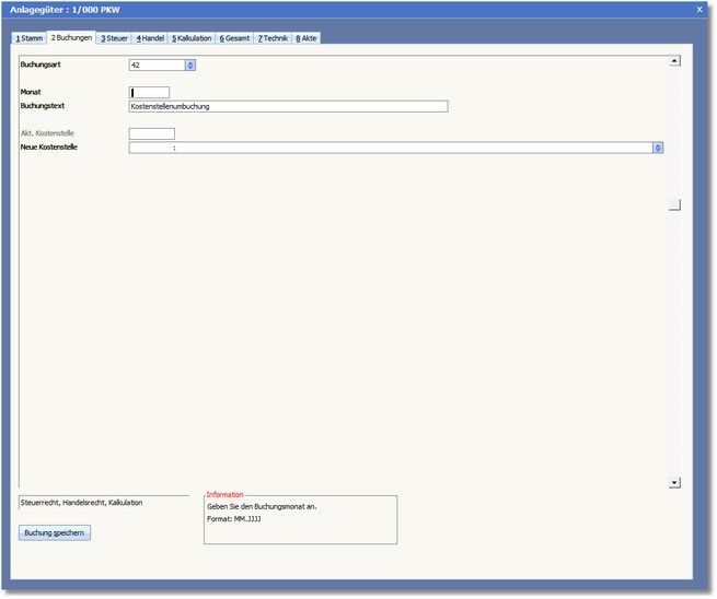 Eingetragen wird der Zeitpunkt in Form vom Monat.Jahr [MM.JJJJ] ab dem die neue Kostenstelle für das gewählte Anlagegut gültig ist.