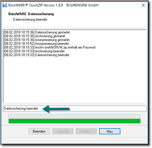 Mit Klick auf [Starten] – wird die Anonymisierung und Archivierung der Daten begonnen.