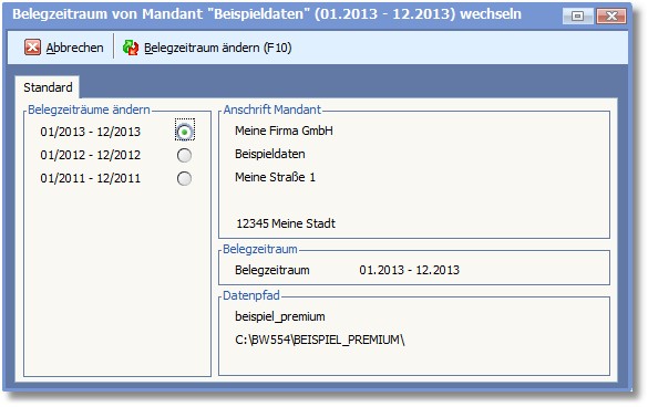 Hier wird der Datenpfad des Mandanten angezeigt.