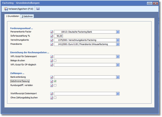 Tragen Sie hier das Verrechnungskonto für das Factoring ein.