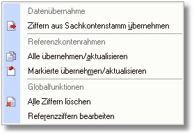 Über diesen Button kann nun die USt-Kennziffer mit dem Referenzkontenrahmen abgeglichen werden. Folgendes Menü steht Ihnen dabei zur Verfügung: