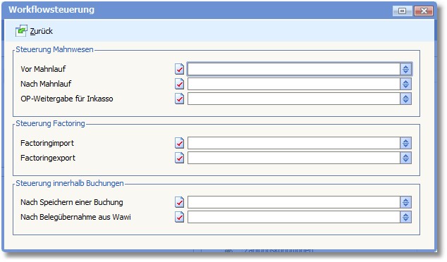 Hier kann ein individuelles Workflowscript für die Weitergabe der Offenen Posten an das Inkassounternehmen hinterlegt werden.