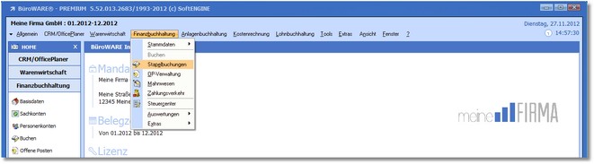 1. Öffnen Sie die Stapelverwaltung über den Hauptmenüpunkt "Finanzbuchhaltung > Stapelbuchungen".
