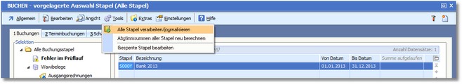 2. Wählen Sie den Menüpunkt "Tools > Alle Stapel verarbeiten/journalisieren".