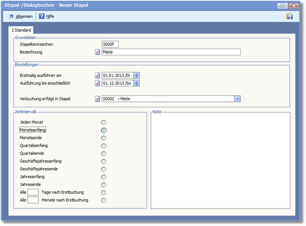 Navigation:  Finanzbuchhaltung > Laufende Vorgänge > Stapelbuchungen > Die Karteikarte "Terminbuchungen" > Terminbuchungen anlegen und ändern >