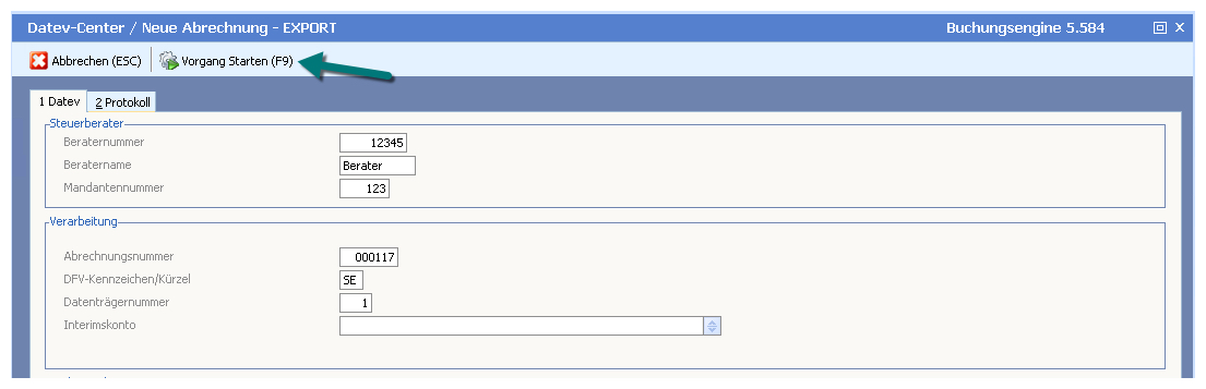 3. Starten Sie den Export mit der Funktionstaste [F9] bzw. Klick auf den Button <Vorgang Starten (F9)>.