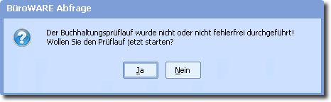 Beim Starten des Exports wird die Durchführung des Prüflaufes geprüft und Sie werden zum Ausführen aufgefordert, falls Sie keinen Prüflauf durchgeführt haben.