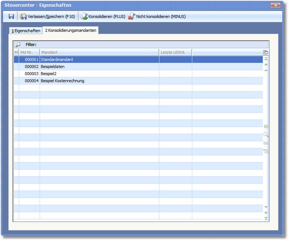 In dieser Karteikarte werden die Mandaten zu Konsolidierung ausgewählt.