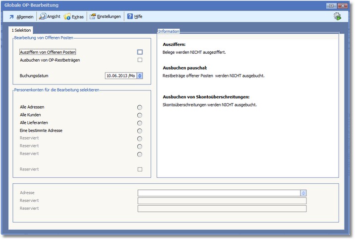 Aktivieren Sie diese Option, wenn Sie die Daten des Selektionspools aus den Adressstammdaten für die OP-Bearbeitung nutzen wollen. Damit werden dann nur Adressen verwendet, die im oben festgelegten Adressbereich und im Selektionspool vorhanden sind.