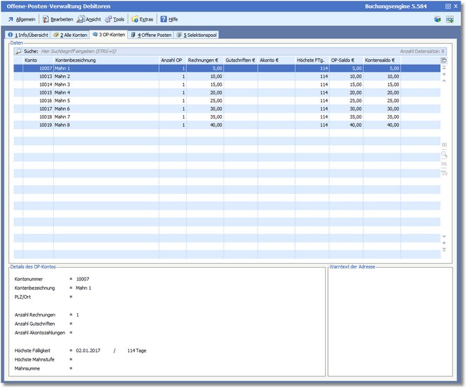 Navigation:  Finanzbuchhaltung > Laufende Vorgänge > OP-Verwaltung >