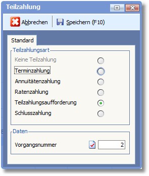 a) Teilzahlungsmanagement (Basisdaten > "Weitere Einstellungen > Teilzahlungsmanagement")