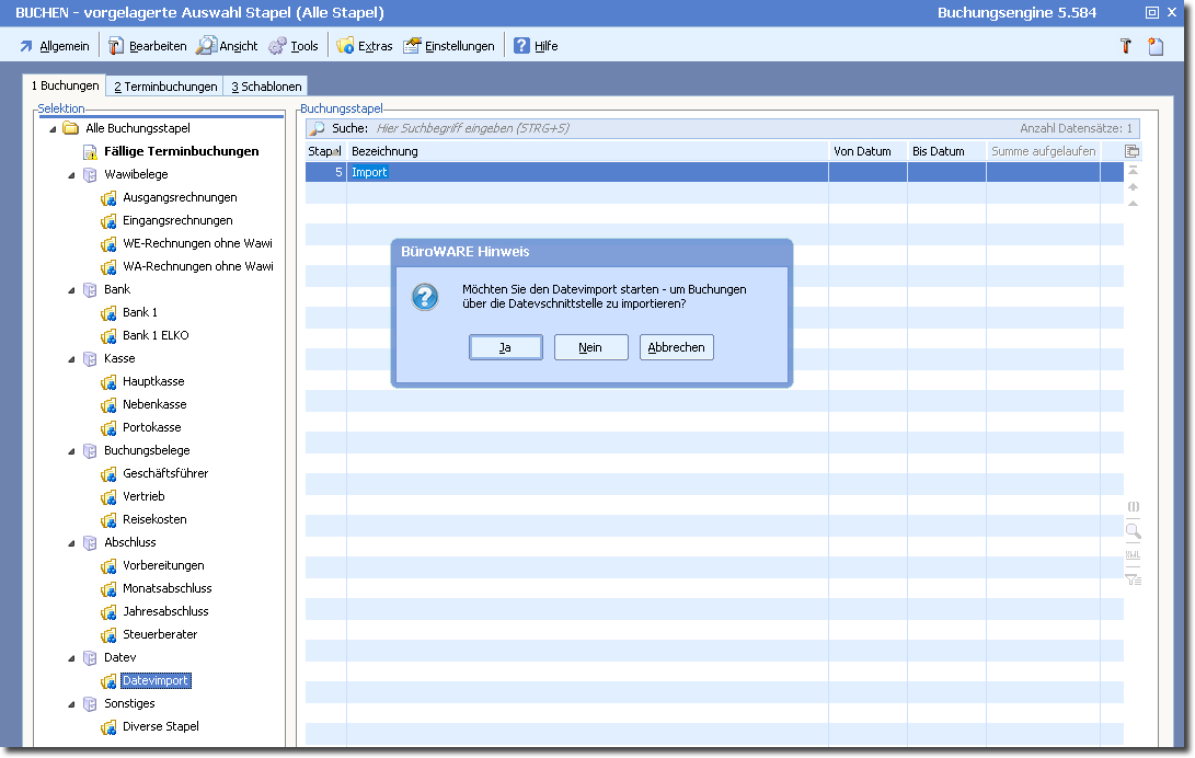 DATEV-Import über die Buchungsfunktion (Stapelauswahl)