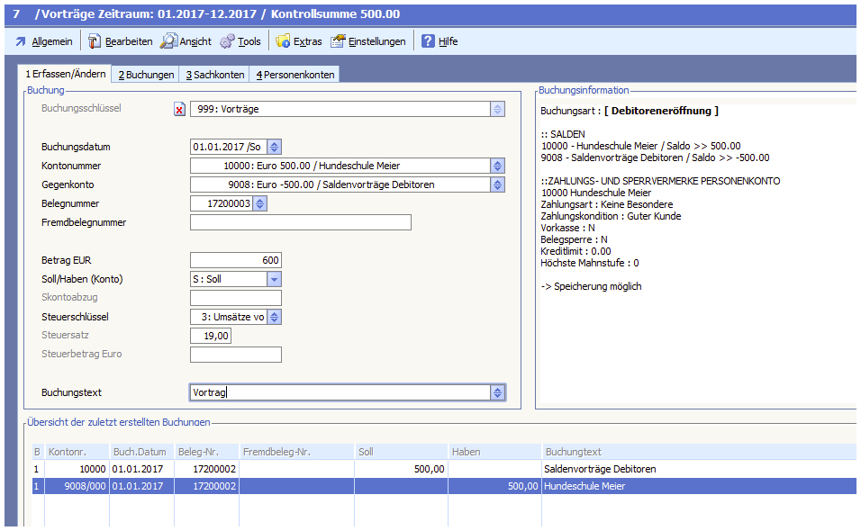 Hier ein Beispiel für eine korrekte Vortragsbuchung: