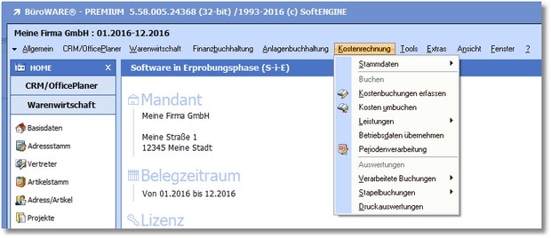 Dieser Teil des Handbuches dient der Erläuterung der Programmfunktionen der BüroWARE Kostenrechnung. Hier erfahren Sie, welche Eingaben in den einzelnen Feldern möglich sind bzw. welche Eingaben vom Programm erwartet werden.