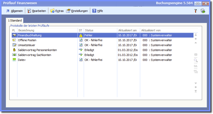 Navigation:  Finanzbuchhaltung > Monatliche/periodische Arbeiten > Finanzbuchhaltung prüfen >