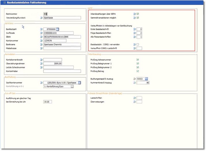 2. Weiterhin müssen in den Stammdaten der einzelnen Banken die Einstellungen zu SEPA hinterlegt werden.