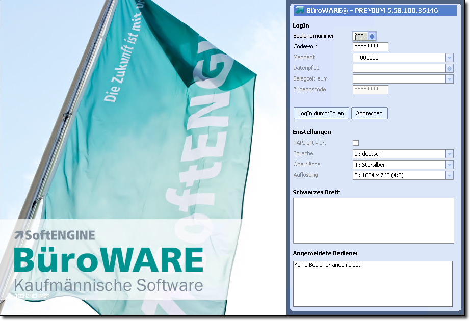 Die Anmeldung ist identisch mit der BüroWARE-Anmeldung.