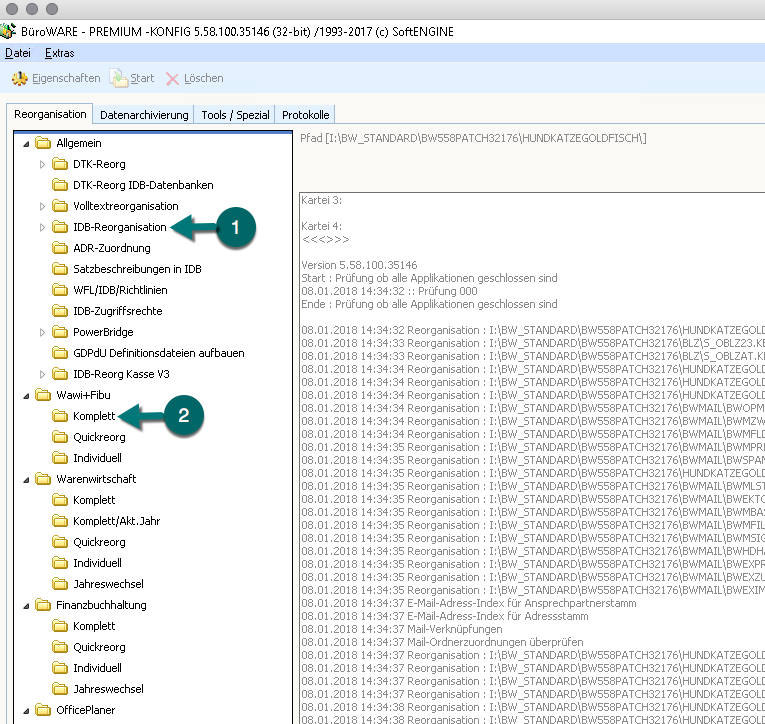 Nun zuerst die IDB-Reorganisation und danach die WAWI-FIBU-Komplettreorganisation starten.