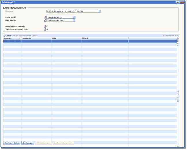4. Klicken Sie mit der Maus auf den Button <Datenimport starten>, um die Quelldatei einzulesen.