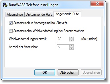 << Hier KLicken um eine Inhaltsübersicht anzuzeigen >> Navigation: CRM/OfficePlaner > Telekommunikation/BüroWARE Phone > Einstellungen für abgehende Anrufe |