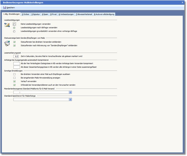<< Hier KLicken um eine Inhaltsübersicht anzuzeigen >> Navigation: CRM/OfficePlaner > Mailsystem > Mail einrichten > E-Mail-Assistent - Extras > Bedienerbezogene Einstellungen |