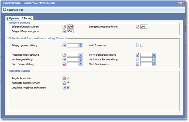 Aktivieren Sie den Status dieses Feldes þ, wenn die Angebote beim Wechsel in den Belegerstellungsbereich direkt erstellt werden sollen.