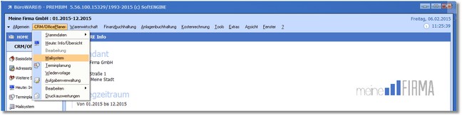 1. Klicken Sie mit der Maus im Hauptmenü auf "CRM/OfficePlaner > Mailsystem".