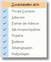 1. Klicken Sie auf den Button <Ansicht> in der Menüleiste des Mailassistenten und wählen Sie anschließend den Menüpunkt "Zusatztabellen".