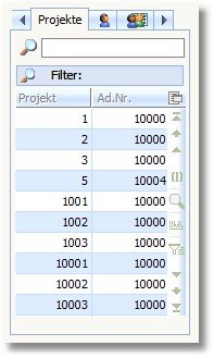Über das Suchfeld unterhalb der Karteireiter können Sie einen Suchbegriff eingeben, nach dem die angezeigte Zusatztabelle durchsucht werden kann.
