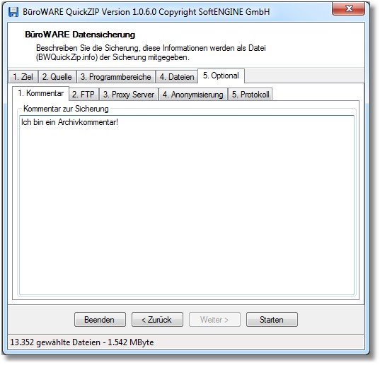 Navigation:  Tools > BWQuickZip > Optionale Einstellungen >