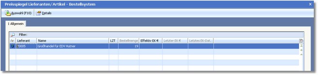 Hier werden die Lieferanten aufgelistet, bei denen der Artikel bisher gekauft wurde.