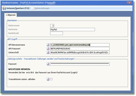 Hier ist das Passwort für die manuelle Abholung der Paypal-Transaktionen zu hinterlegen.