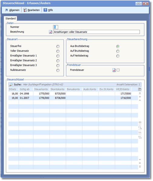 Navigation:  Warenwirtschaft > Stammdaten > Basisdaten > Steuerschlüssel >
