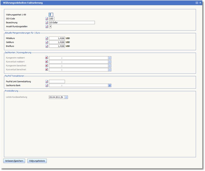 Navigation:  Warenwirtschaft > Stammdaten > Basisdaten > Währung >