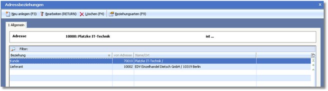 3. Mit [F3] können Sie neue Beziehungen einer Adresse definieren und mit der [RETURN]-Taste kann eine bestehende Beziehung bearbeitet werden.