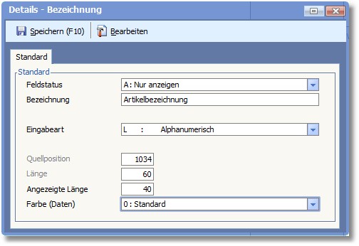 [F10] speichert die Änderungen an den Spalteneigenschaften.