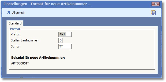 Tragen Sie hier die Artikelnummer des Artikels ein, den Sie neu anlegen wollen. Das Programm macht einen Vorschlag, basierend auf der ursprünglichen Artikelnummer. Diesen können Sie jedoch überschreiben.