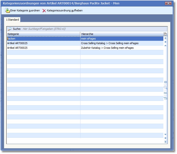 In den Kategoriezuordnungen sehen Sie, welchen Kategorien der Artikel bereits zugewiesen wurde.