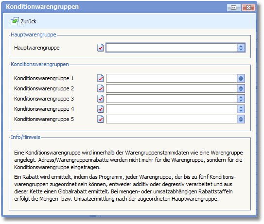 Der Bereich "Konditionswarengruppen"