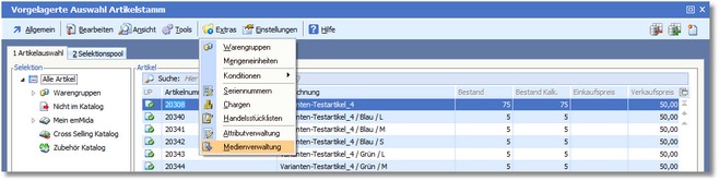 1. Klicken Sie im Artikelstamm auf "Extras > Medienverwaltung".