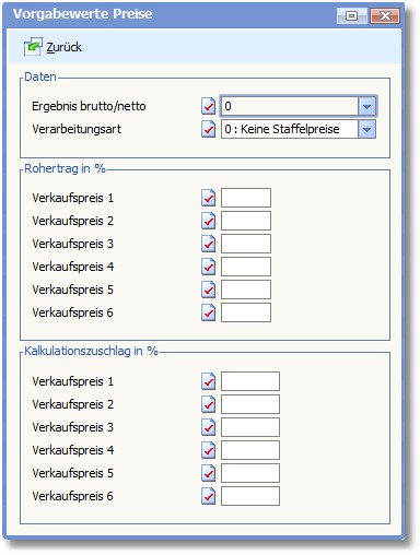 Vorgabewerte Preise