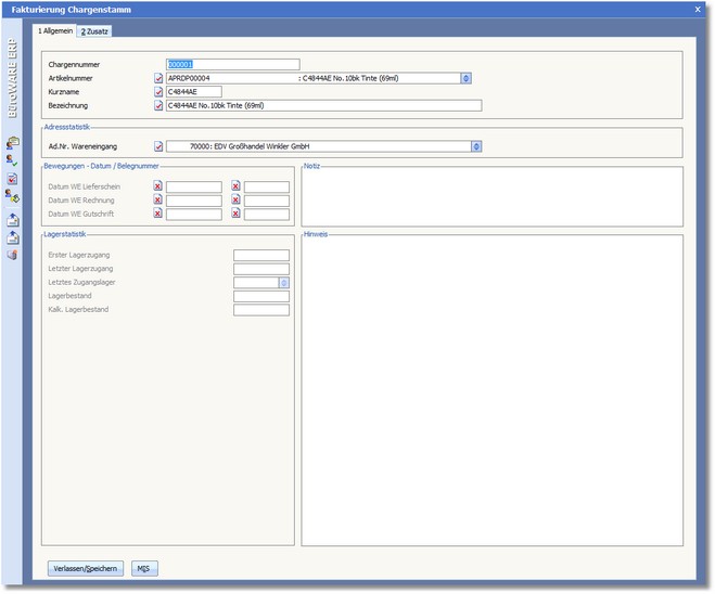 Navigation:  Warenwirtschaft > Stammdaten > Chargen >
