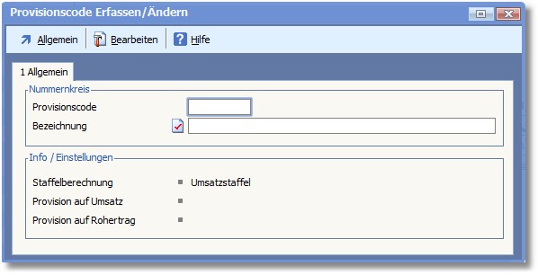 Der Dialog "Provisionscode Erfassen/Ändern" wird geöffnet.