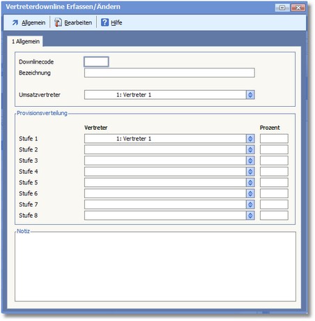 Der Dialog "Vertreterdownline Erfassen/Ändern" wird geöffnet.