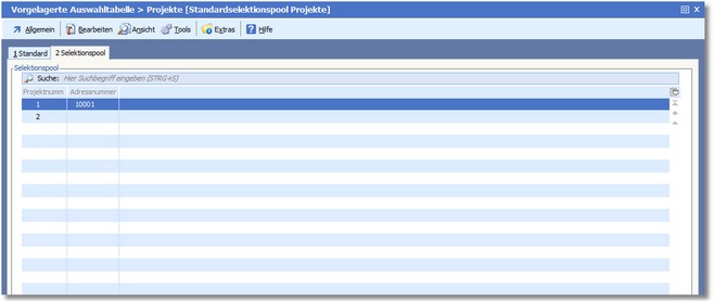 Weitere Informationen zur Nutzung der Selektionspools finden Sie im Kapitel Selektionspools.