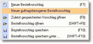 2. Klicken Sie mit der Maus auf den Menüpunkt: "Neuer auftragsbezogener Bestellvorschlag".