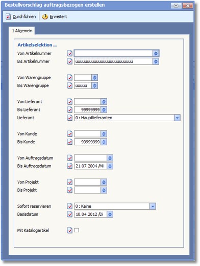 << Hier KLicken um eine Inhaltsübersicht anzuzeigen >> Navigation: Warenwirtschaft > Lagerverwaltung > Bestellsystem > Bestellvorschlag auftragsbezogen erstellen |