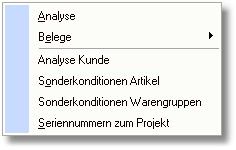 Über den Button <Auswertung> oder mit der Taste [RETURN] öffnet sich ein Popup-Menü mit folgenden Analysemöglichkeiten: